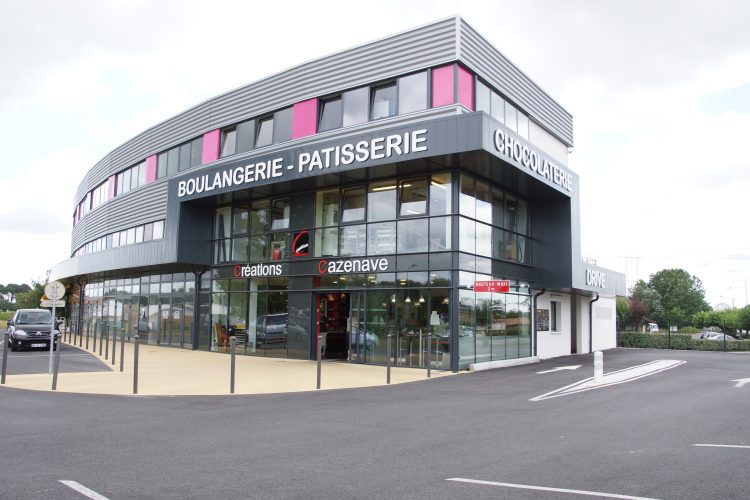 Le bâtiment se situe à l’entrée de Saint-Paul-lès-Dax. Le rez-de-chaussée accueil des commerces de bouche. La boulangerie s’organise sur deux niveaux : en RDC la boutique ainsi qu’un « drive-in », au R+1, l’atelier est mis en valeur : le boulanger sortant son pain du four anime la façade au petit matin.