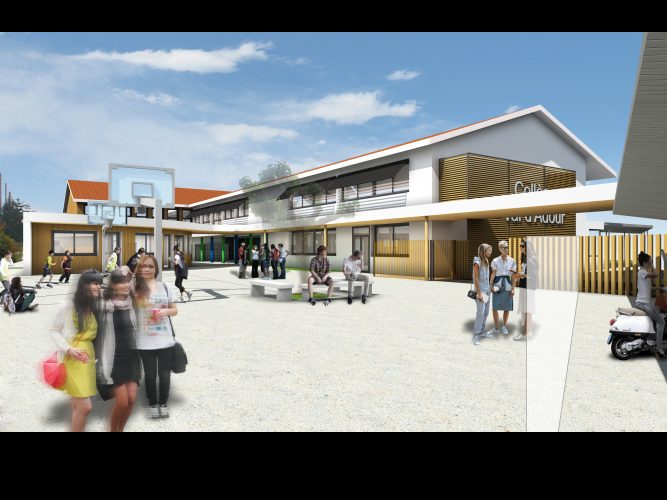 – créer une identification visuelle du collège avec son nom, un éclairage et peut-être une horloge.