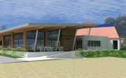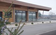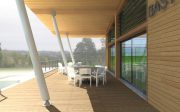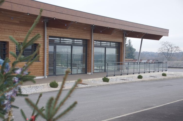 – d’un volume principal en bois qui rassemblera la salle d’activités scolaires, la cuisine et le restaurant scolaire. Le volume sera couvert d’une toiture bac-acier mono-pente orientée face au Sud. Cette dernière sera le support de pose de panneaux photovoltaïques. Son prolongement sur la façade Est viendra en outre couvrir la terrasse d’accès et mettra en valeur le panorama sur Gaujacq.