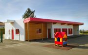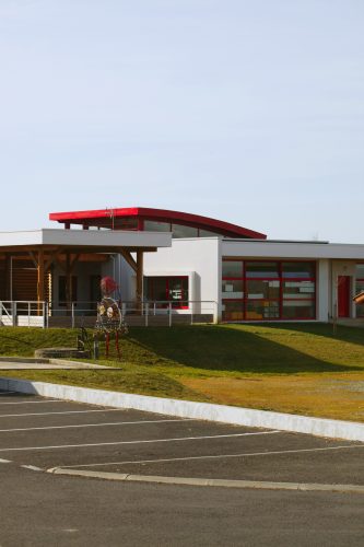 La construction de l’école maternelle de Belus s’inscrit dans un schéma de regroupement scolaire mené par la communauté d’agglomération du pays d’Orthe. Les salles de classe sont organisées autour d’un espace central lumineux et largement dimensionné, couvert par une toiture courbe en bac acier. Notre projet est relié à l’école primaire actuelle par un préau couvert, à partir duquel sont réorganisés les accès au groupe scolaire. Tout en assurant une continuité fonctionnelle avec le bâti traditionnel existant, nous avons utilisé un vocabulaire architectural contemporain.